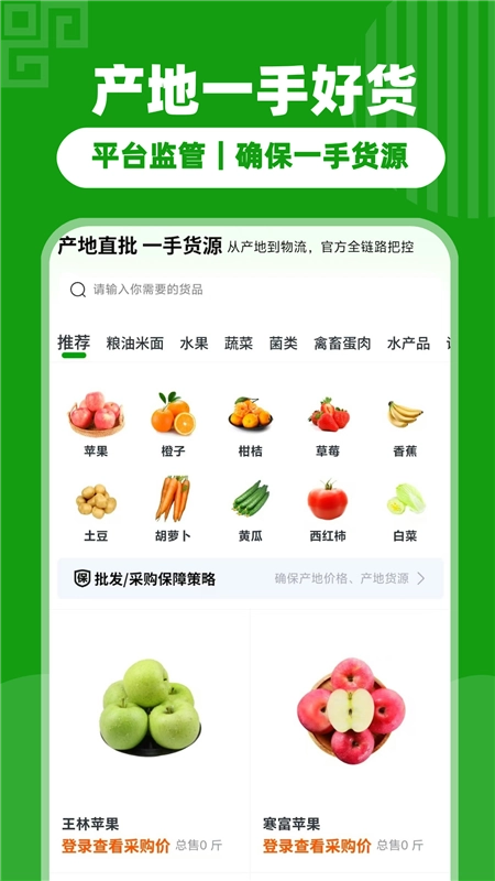 产地代办新增长至200家。西瓜、苹果、香蕉、梨、桃、火龙果等各类农产品的全国产地货源已批量上市,价格正呈下降走向。平台连通全国产地代办与种植户,可一键查询全国产地价格,助力您批发采购时节省成本,同时确保品质可靠。