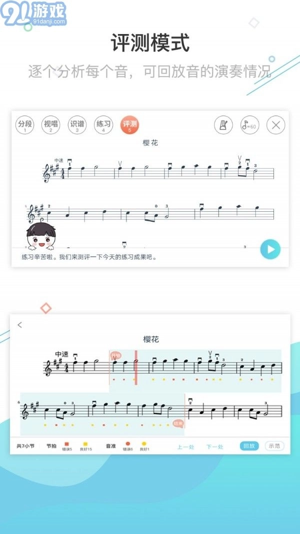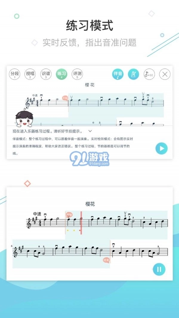 2.丰富的学习资源:ai乐陪练拥有考级曲目、乐谱、示范演奏等多样的学习资料。