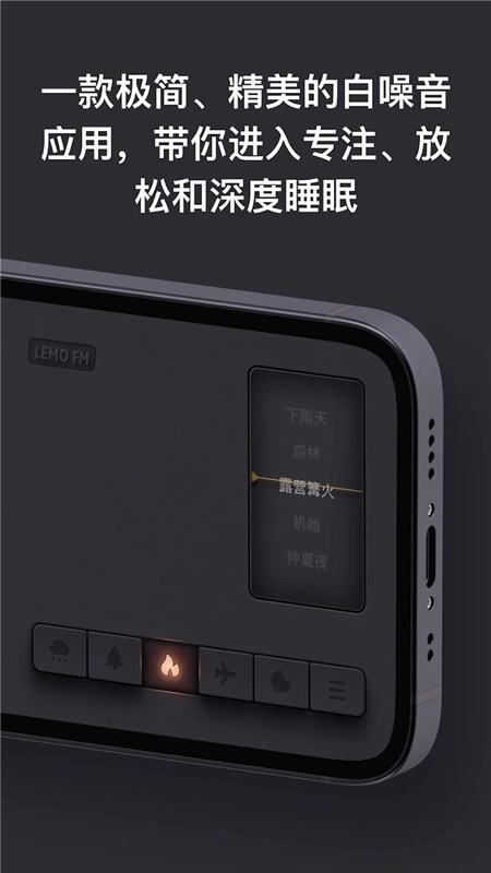 LEMOFM白噪音是一款主打极简与优雅风格的白噪音应用,借助高清自然音效的播放,助力用户专注投入、舒缓身心或是快速进入睡眠状态。秉持着“Lessismore”的设计理念,我们打造了LEMOFM——它的界面采用简洁美观的收音机造型,当你的指尖轻触收音机按钮时,自然之声便会缓缓流淌而出,呼吸灯也随之开始规律地明暗闪动。这些用心雕琢的交互细节,能让你以充满仪式感的方式,开启一场沉浸式的声音之旅。