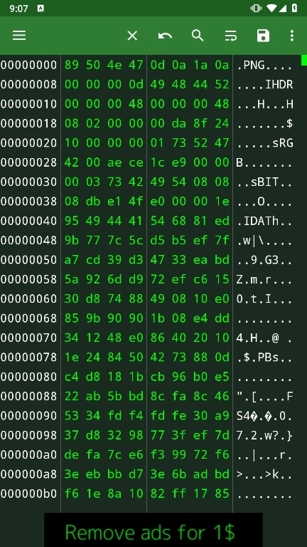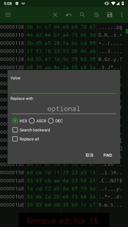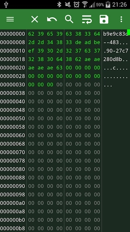 16进制编辑器手机版的英文原名是HexEditor,这款工具的功能设定较为简洁,能够支持ASCII、十六进制、十进制、浮点数、双字节以及二进制等多种数据格式的编辑与查看操作。同时,它还具备创建新文件、插入数据、删除数据、替换数据,以及查找和替换字符串等实用功能。