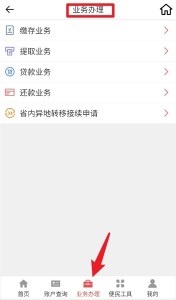 3、“业务办理”栏目可办理缴存、提取、贷款、还款业务,还能提交省内异地转移接续申请等操作。
