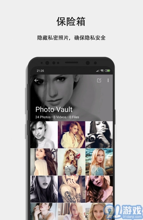 2.隐私相册:可设置密码来隐藏私密相册,并且支持一键将手机相册里的视频和图片导入其中。