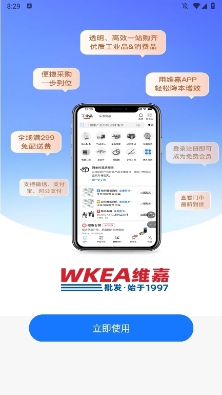 WKEA维嘉是上海维嘉推出的应用,上海维嘉自1997年成立以来,始终致力于为会员提供性价比更高的产品与服务,解决工业品采购难题,同时将61%的利润与同事共享,携手共创美好未来。我们将一直坚守上海维嘉的核心理念。
