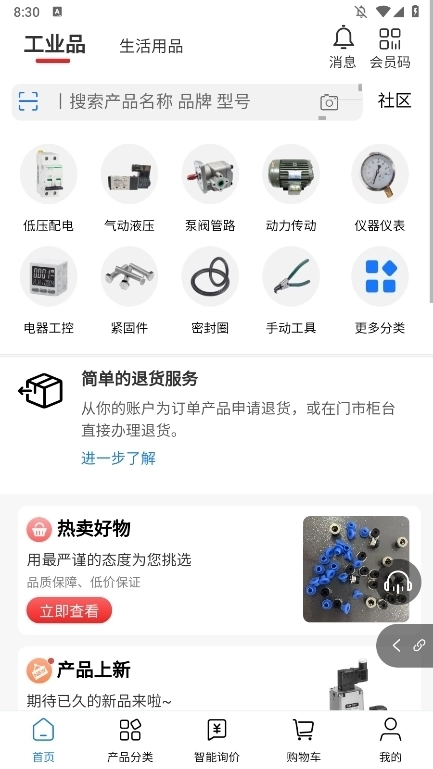 使用我们的应用,您能够透明、高效地一站式备齐各类优质生活用品与工业品;可随时一键联系在线客服解决问题,平台支持微信、支付宝、对公支付等多种支付方式,您能随时随地进行询价、采购并关注订单进展,还能查看门市新品到货信息,系统会自动提醒,同时支持重复购买产品及近期购买产品的一键下单,也可通过收藏产品轻松实现一键购买。