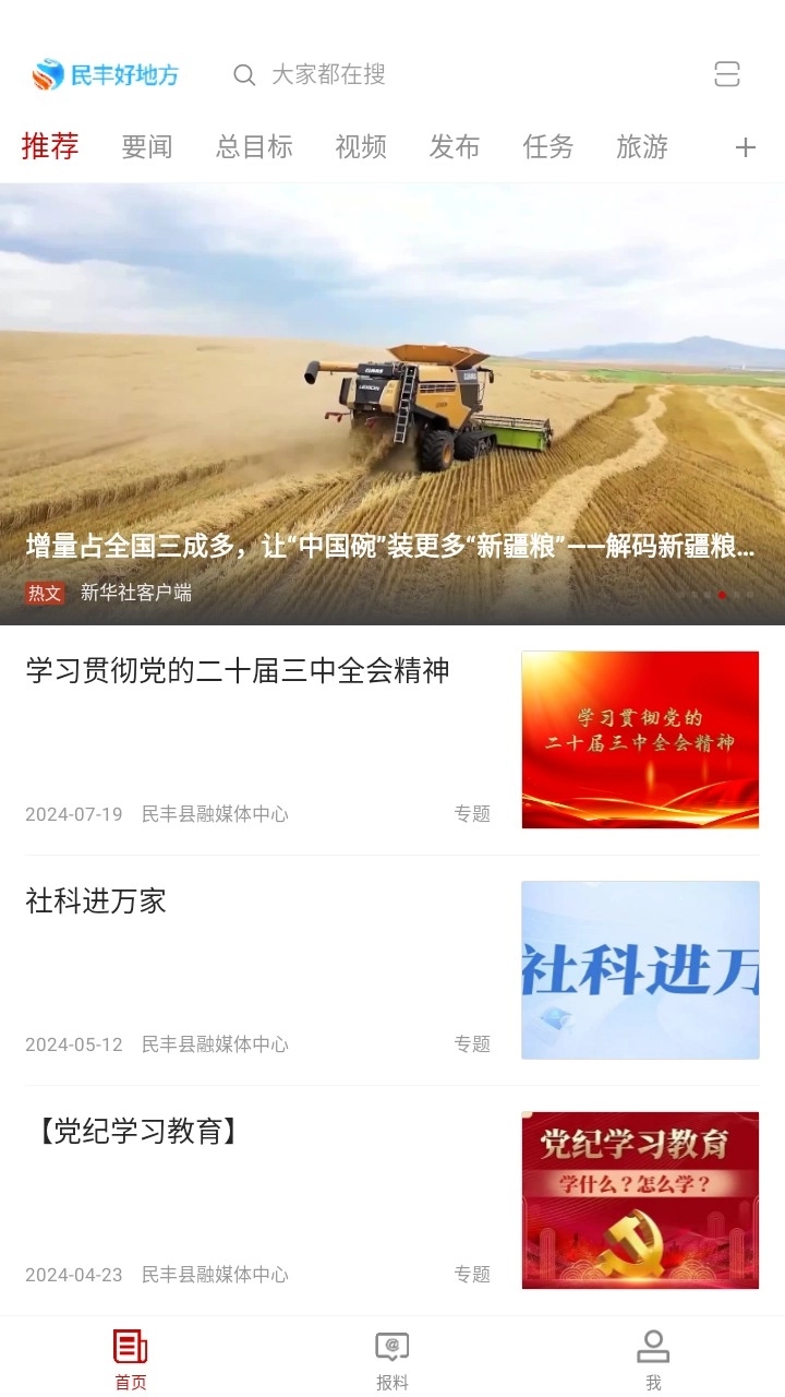“民丰好地方”是一款专为本地用户打造的生活服务软件,依托广播电视、两微一端、抖音等渠道构建传媒矩阵。作为响应中央及自治区要求、适配信息传播规律、保障意识形态安全的自主可控平台,该客户端在践行移动优先、内容为王战略中具有关键作用,旨在强化群众宣传、引导与服务,打造成为本地核心的宣传与服务阵地。平台以服务群众、引导群众为核心,设有新闻、服务、党建、活动、直播、融媒六大功能板块。其中新闻板块结合县委县政府工作部署与本地实际,特别增设“旅游”和“脱贫攻坚”两个特色栏目。