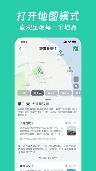 1、在这里您可以把您想去的地点添加到行程里,系统会自动规划出最适合您的路线和时间表。