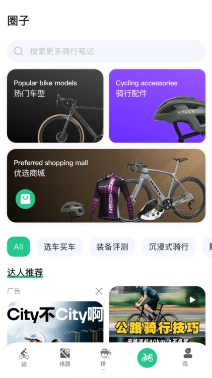 社区互动功能:用户能在动态页面分享骑行日记,还可以关联对应的骑行路线、使用的装备以及参与相关的话题标签。