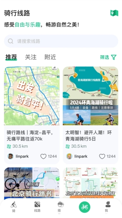 分享骑行路线,寻找有趣打卡点;