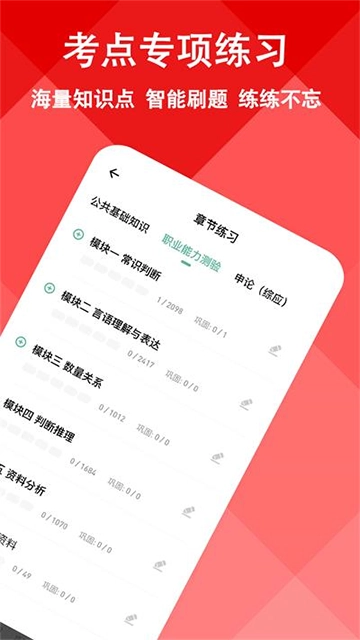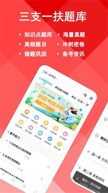 三支一扶练题狗是专为三支一扶考试打造的刷题工具,三支一扶作为国家组织的大型招录考试,各地考试时间并不统一,会按照既定比例,以县(市、区)为单位、分岗位从高分到低分划定面试与考核入围名单。考试包含笔试和面试环节,笔试科目为《职业能力测试》与《综合知识》。这款软件功能十分全面,不仅整合了海量题库资源,涵盖丰富真题与模拟题,方便用户随时进行练习;还配备名师在线解析服务,能智能生成个性化学习方案,助力考生高效备考。此外,用户还可通过该应用及时获取三支一扶考试公告与相关资讯,是备考三支一扶的理想选择,快来开启你的上岸之路吧!