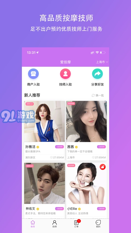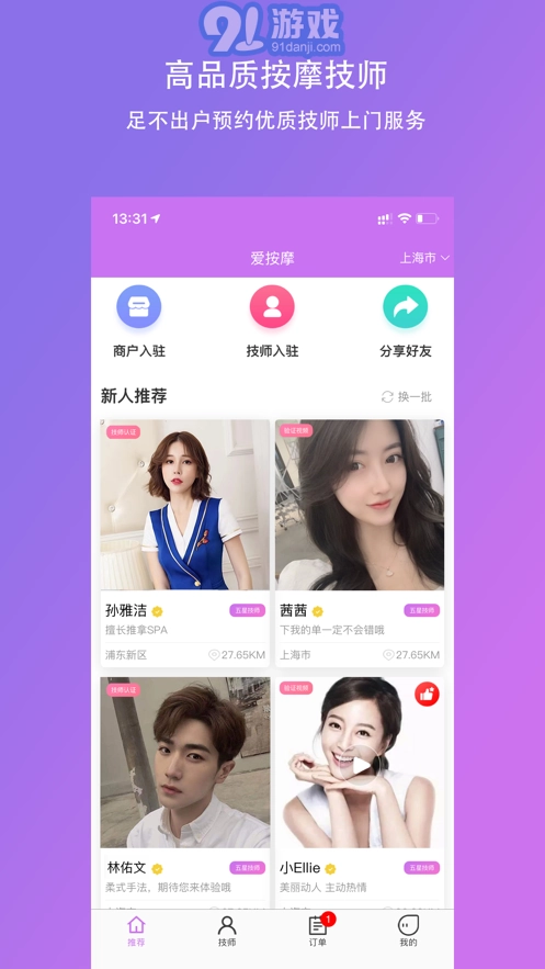 爱按摩是一款为安卓用户量身打造的便捷上门预约按摩服务软件,凭借其覆盖全国、全年无休的高品质服务,以及专业的技师团队和丰富多样的按摩服务类型,受到了众多用户的喜爱。不管是对养生感兴趣的用户,还是想在家中就能体验专业按摩服务的中老年人,爱按摩都能满足他们的需求。用户只需用手机简单选择按摩方式和时间,就能完成预约,享受专业又舒适的按摩体验。