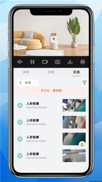 可以实时查看摄像头的监控画面,画面支持高清播放,还能进行缩放、旋转等操作。