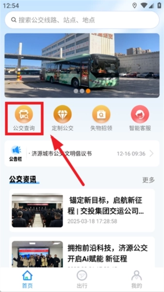 安装并打开济源公交,在首页点击公交查询