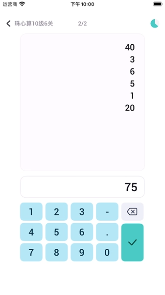 用户需按顺序逐个挑战关卡,通过持续练习来提升自身的珠心算水平。
