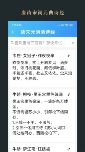 1、接入抖音生态,唐诗宋词、笑话段子、散文随笔、金句、歇后语等内容,支持一键发布优质内容到抖音,还能一键分享至抖音群聊!