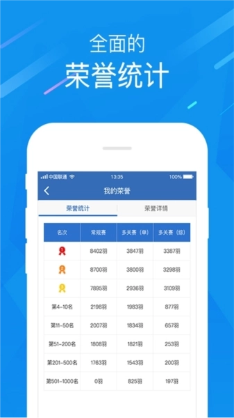 全面的个人荣誉统计:用户能在应用里查看个人荣誉数据,知晓自己在赛事中的表现。