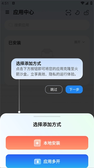 本地:从存储中选择APK,在沙盒内全新应用。