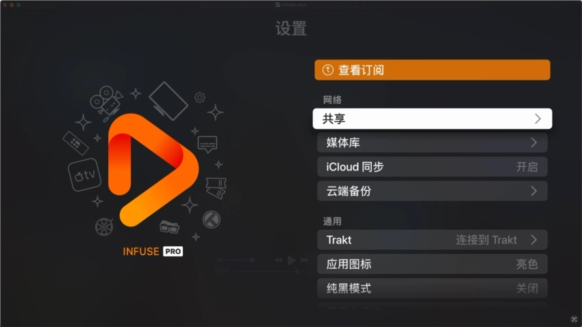 打开Infuse,点击右上角设置,点击共享
