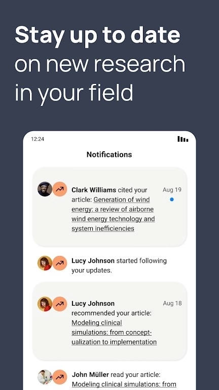 跟踪您的阅读、引用、研究兴趣得分等信息,当有人与您的作品进行互动时,您会收到相应通知。