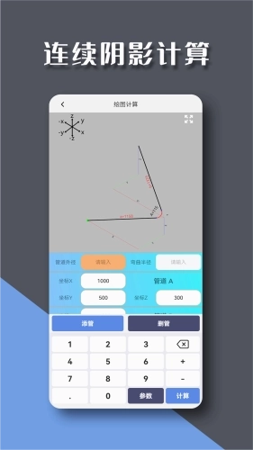 绘图计算(需会员):支持连续多段带阴影管道的计算,只需输入每根管道的偏移值就能快速得出结果,适用于复杂工况的设计场景。