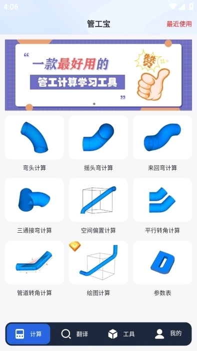 1、管工宝包含空间来回弯计算、三通接弯头计算等各类计算工具,可满足多样化的使用需求。
