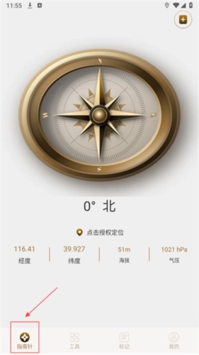 2、在界面下方选择指南针功能