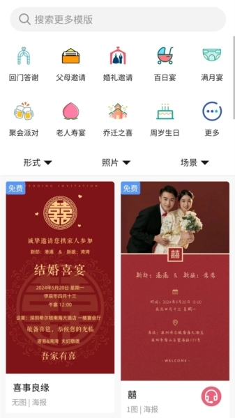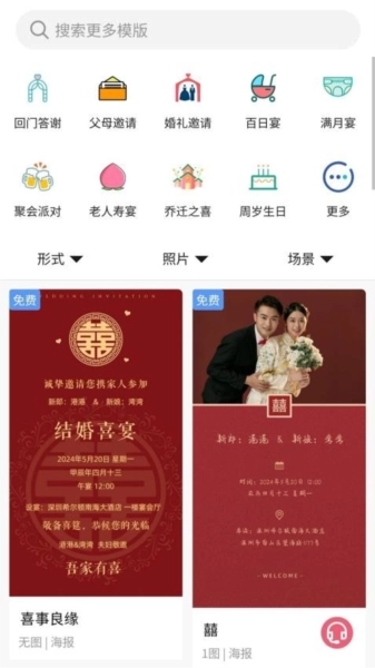 2、便捷的操作方式:用户可借助关键词搜索、分类浏览以及条件筛选等多样化途径,迅速找到想要的请柬样式,从而节省时间。