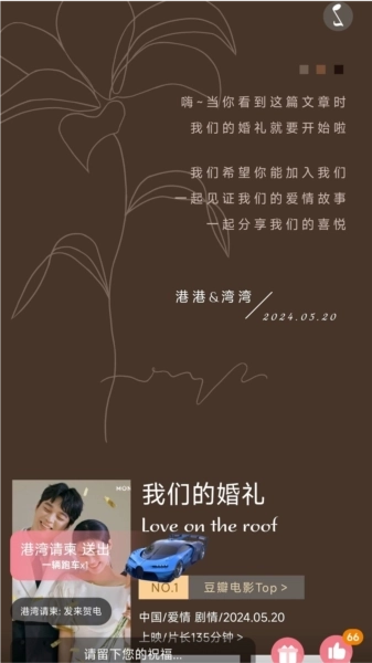 4、多途径分享功能:请柬编辑完成后,您可通过微信、朋友圈等渠道分享给亲友,一同传递喜悦瞬间。