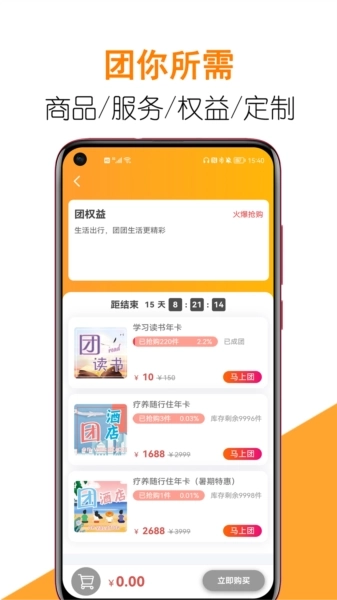 团生活用户端是一个融合生活服务与非密办公功能的综合性平台,旨在为用户带来高品质、高效率的使用体验。从优惠购物到便捷生活服务,用户都能轻松获取,尽享航天科技赋能的美好生活。该平台由中国航天科技集团推出,航天弘发网络科技公司负责研发与运营,专门面向全国央企、大中型企业及高校设计。秉持共享、融合、智慧的发展理念,平台以“团品质、团实惠、团快乐”为服务核心,通过技术赋能与用心服务,助力客户专注工作、提升企业效能。平台涵盖航天文创、福利馆、福礼集市、消费帮扶等优惠购物板块,同时提供智慧党建、互联网工会、教育培训、物资采购、智慧出行等多领域企业服务,全方位满足多样化需求,实现企业与员工的双向满意。