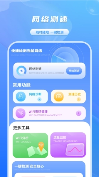 网速检测君是一款特色鲜明的手机WIFI网络管理工具,免费提供全面的网络测速与安全防护服务。它不仅拥有精准的测速能力,让您实时掌握网络速率,还能借助智能连接匹配,保障您接入的WIFI信号稳定且快速。此外,网速检测君具备安全检测功能,为您的网络安全提供有力保障。摆脱网络不稳定和安全隐患的困扰,畅享流畅的上网体验。现在就使用网速检测君,让网络管理变得更便捷、更放心。