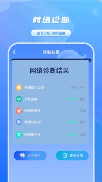 在WiFi信号分析功能里,会对当前连接的WiFi信号强度进行智能分析。
