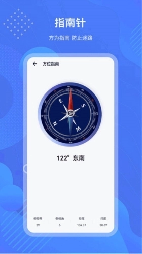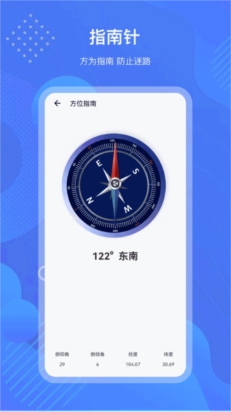 6、指南针是集方向与地图定位功能于一体的实用小工具,很适合方向感不太好、容易分不清东南西北的朋友使用。