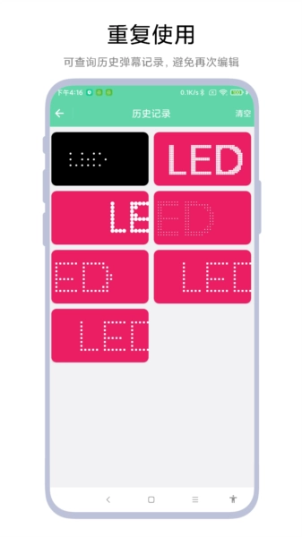 简单LED弹幕器是一款专注于为用户提供LED弹幕展示功能的工具类应用。用户能依据不同场景的具体需求,灵活设置弹幕的内容、颜色与背景,以此呈现富有个性的信息。该软件兼容高清和标清两种分辨率,适用于演唱会应援、约会告白、生日派对等各类活动场合。它配备了多种模板以及背景颜色选项,帮助用户轻松打造出吸睛的弹幕效果。此外,用户还可以自主调整弹幕内容、滚动方向、移动速度、字体大小、字体密度、背景色等多项参数。值得一提的是,软件具备自动记录弹幕历史的功能,下次使用时直接从历史记录中点击即可快速调用。
