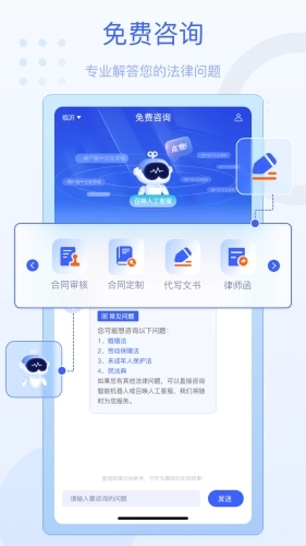 1、法律咨询服务:用户可随时向平台的专业律师咨询各类法律相关问题,从而获取专业的法律建议与指导。