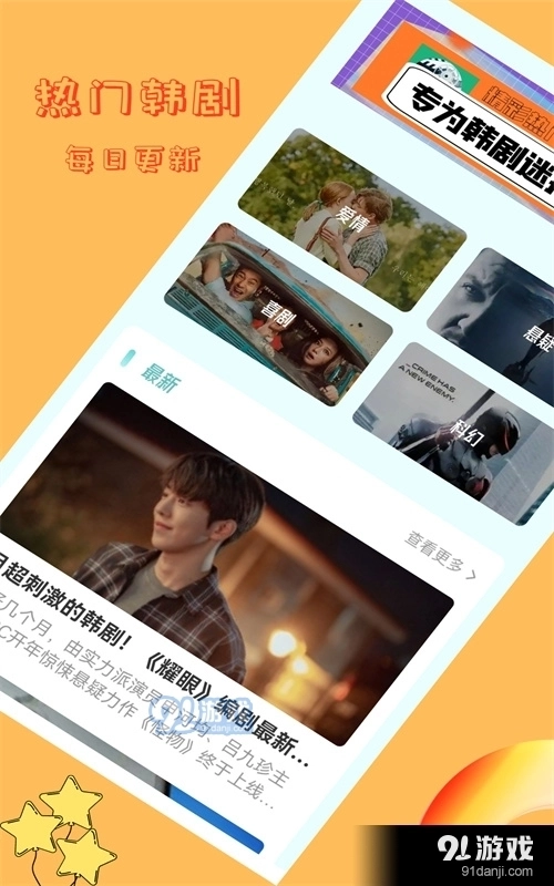 1.最新的韩剧资源会第一时间在首页展示,各类不同的列表也会及时更新;