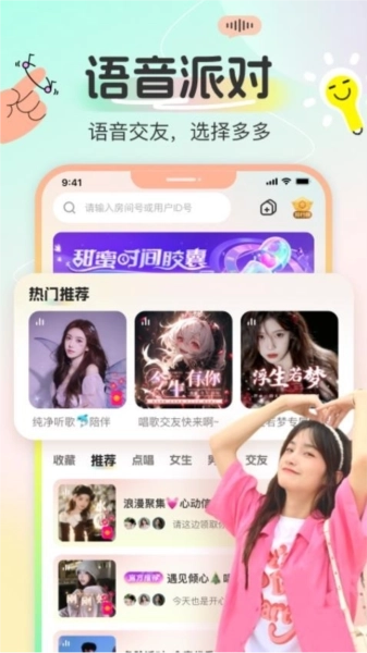 6、语音房间互动可随时开启,各类交友方式简单便捷,让你尽享互动的精彩乐趣。
