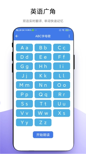 以标准字母发音为切入点,支持任意点读与双语发音;在此基础上,还设计了助力单词快速记忆的场景。