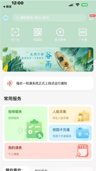 2、智慧生活助手:无论是会议预订还是班车路线查询,无论是健康申报还是返校指南获取,i福农都能帮你轻松处理校园生活中的各类琐事。