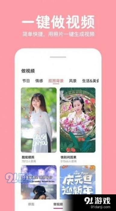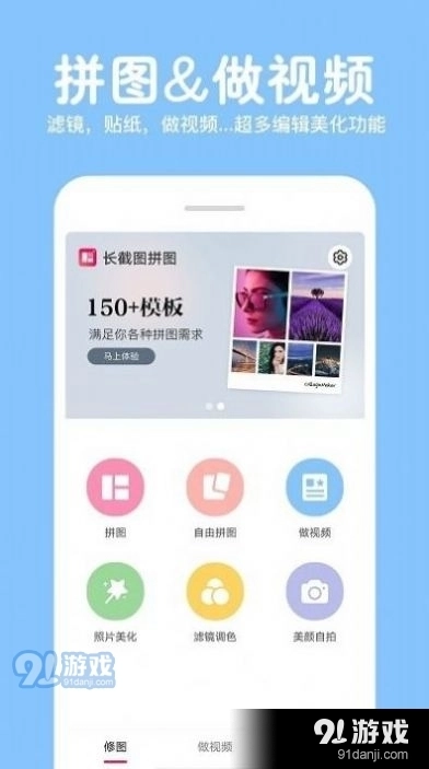 照片拼图修图是一款为喜爱自拍的朋友们量身打造的软件,丰富多样的免费素材可供使用,同时具备智能美颜与修图功能,一键操作简单便捷,还能将高清原图保存至手机相册,有需要的朋友快来体验91照片拼图修图吧。