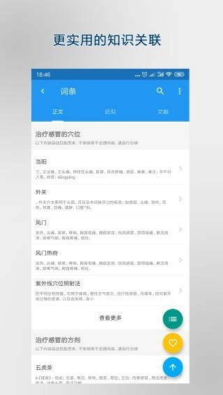 不管在什么时间、什么地方,您都可以查看医学百科里的各种条目,从中医的经络穴位到西医的疾病诊疗,应有尽有。