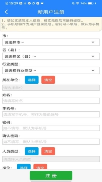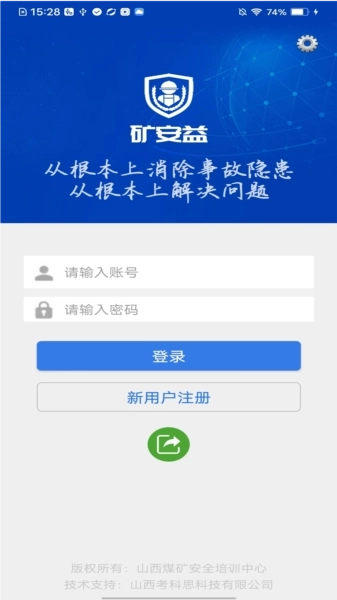 打开矿安益应用程序,通过手机号码完成注册操作,根据界面提示填写所需信息,直至注册流程全部结束。