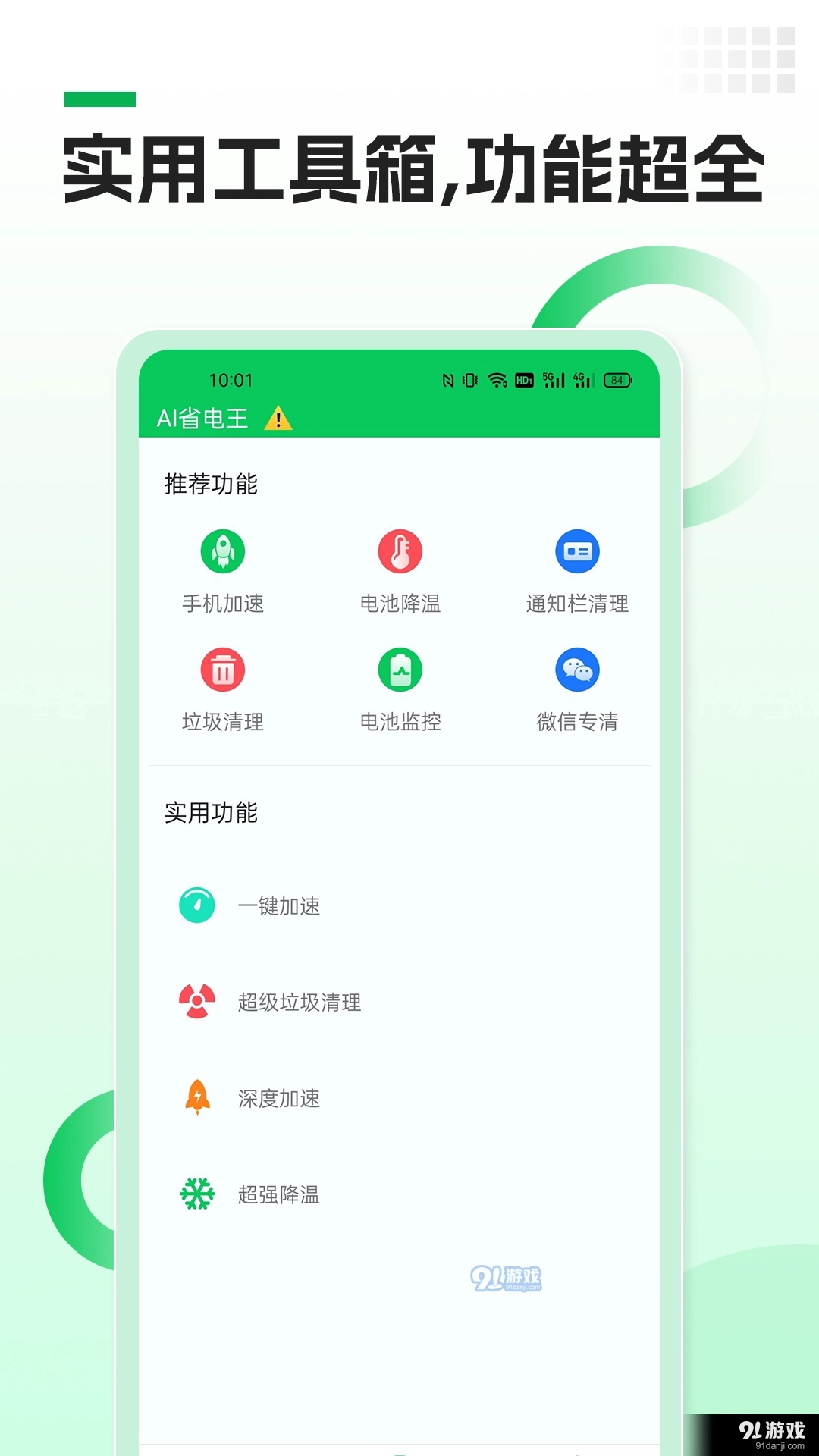 2、整合多种功能,可随时点击所需功能,为手机进行全面清理。
