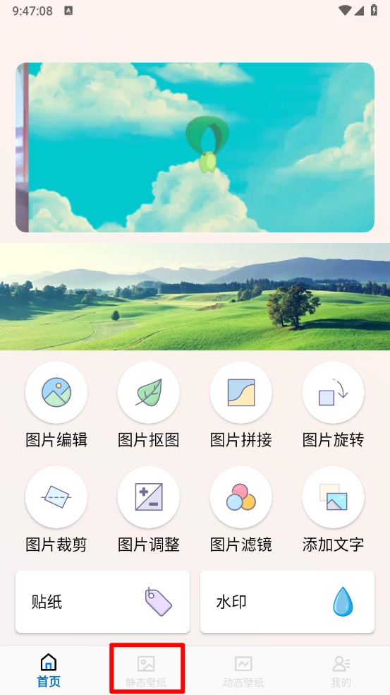 1、打开精灵墙纸,在主页点击"静态壁纸"进入。