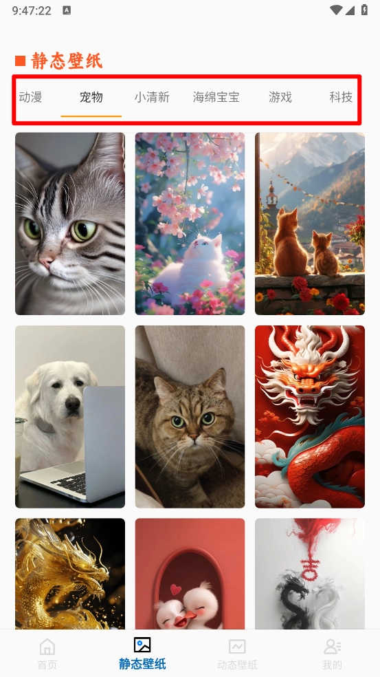2、如图所示,根据分类即可选择喜欢的壁纸资源。