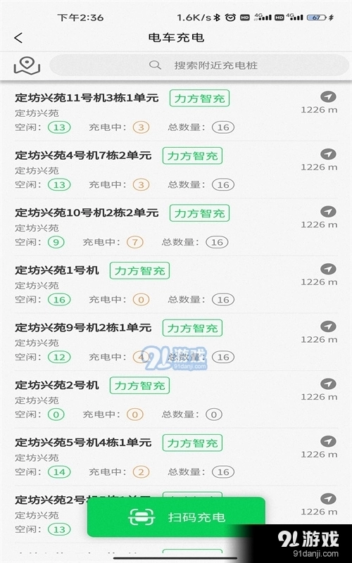 1、当你出门途中发现车辆没电时,不必慌张,你可以通过平台查询附近的充电桩。