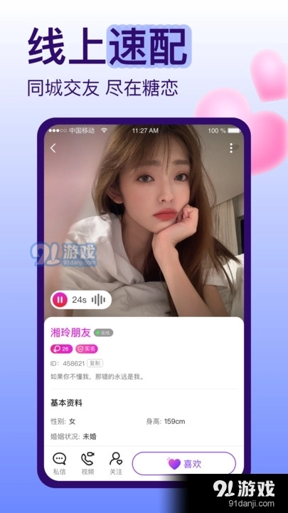 在这里,你能邂逅众多优质单身异性,所有用户均经过实名认证,在糖恋中寻觅属于你的专属故事。
