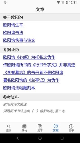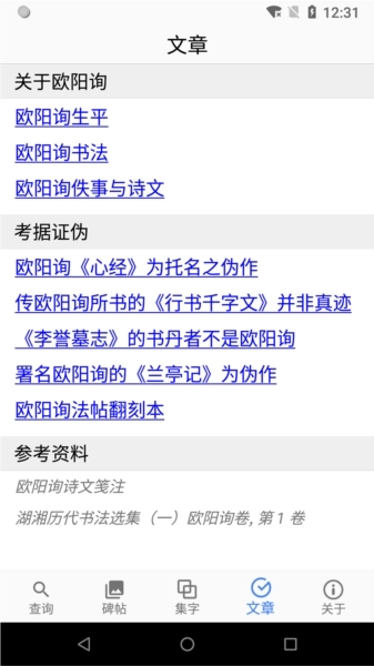 欧阳询书法字典堪称书法学习的得力助手,它有着友好的界面设计和实用的功能配置。对书法初学者而言,这里资源丰富,操作简单易上手;对资深书法爱好者来说,它更是深入钻研的珍贵资料宝库。开发者始终在努力进行持续优化,力求每次版本更新都能带来更流畅的使用体验。要是你对欧阳询的书法心怀向往,可千万别错过这款欧阳询书法字典!