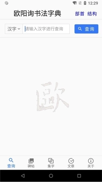 汉字查询:用户可以在输入框中输入任意汉字或词语,将提供该汉字或词语在欧阳询书法中的正确书写形式。