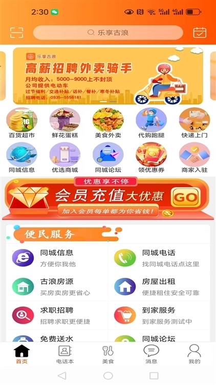 乐享古浪作为古浪本地的综合生活服务平台,涵盖了餐饮外卖、生鲜商超配送、便民缴费、本地商家探店、生活服务预约等丰富场景,精准契合古浪居民的日常需求。无论是上班族急需的午间餐食、家庭采购的新鲜果蔬,还是居民必备的水电燃气缴费,都能通过该平台迅速解决。平台整合了本地优质商家资源,从街边特色小吃到连锁商超,从家政维修到文旅咨询,全方位覆盖生活的各个方面。平台注重用户体验,界面设计简洁直观,操作流程便捷高效,无需复杂步骤即可完成所需服务。同时,平台融入了本地特色元素,推荐古浪本土美食、特产好物和文旅景点,让用户在享受便捷服务的同时,感受家乡的独特魅力。