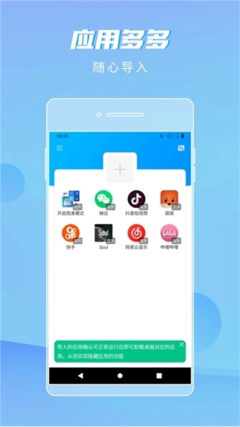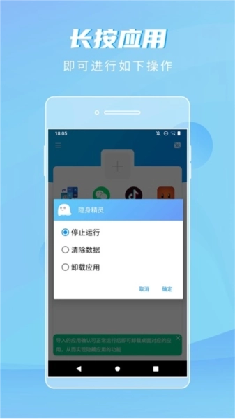 被选中的应用会被添加至隐身空间,同时在手机桌面上隐藏,仅能通过隐身精灵来访问。