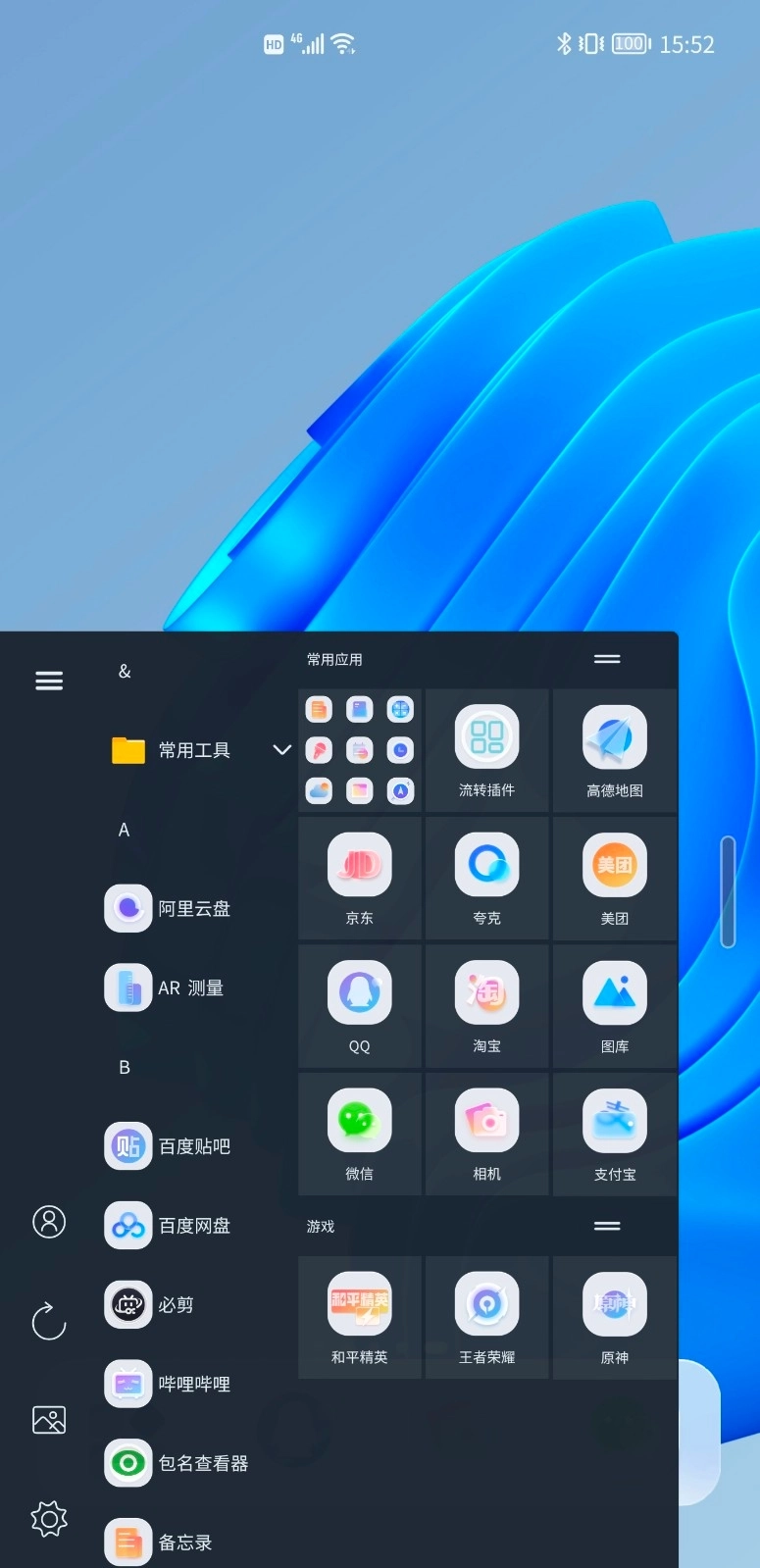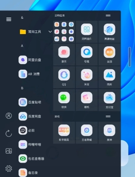青之蓝插件具备模拟Windows操作系统的功能,特别是能呈现Win10或Win11的界面风格,为用户打造别具一格的操作感受。它能够模拟Windows的开始菜单、磁贴等功能,使用户即便在手机上,也能享受到Windows系统带来的便捷操作体验。